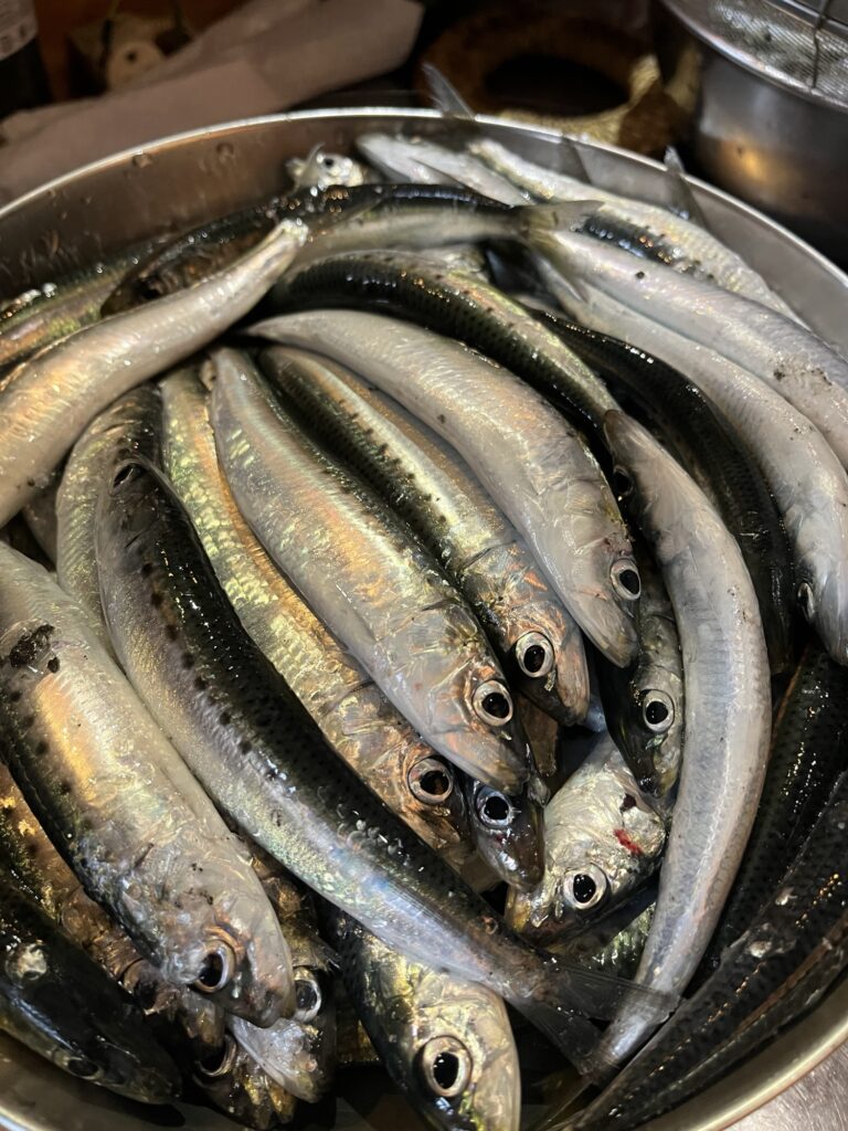 年末年始の宿の仕入れをする中、魚の胃袋をチェックする。この時期はキビナゴやトウゴロウが定番だが、トウゴロウの気配は無い。しかし、9cmほどのカタクチイワシを確認。
